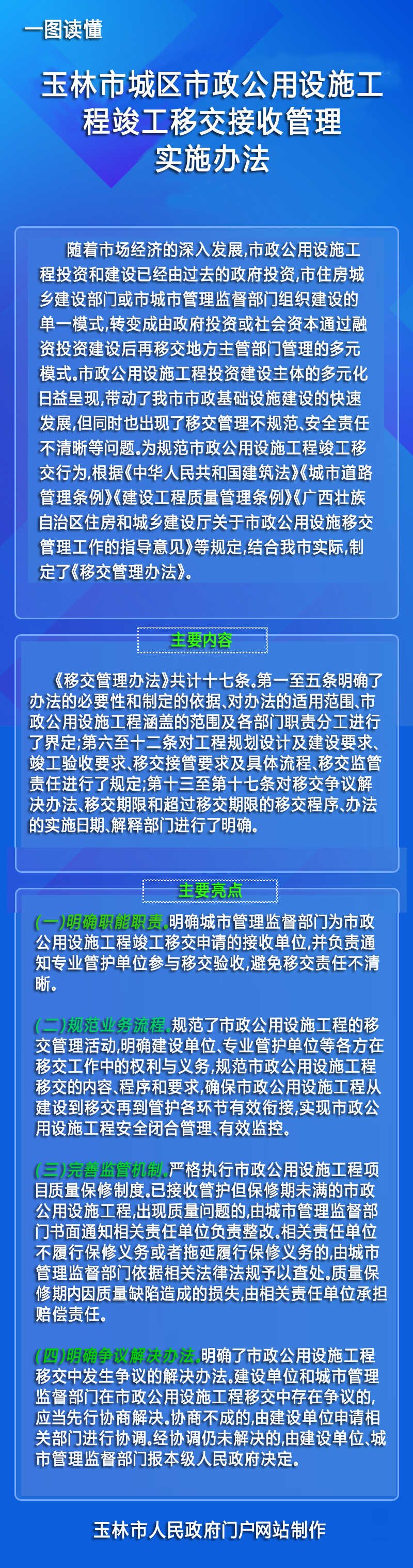 图解:玉林市城区市政公用设施工程竣工移交接收管理实施办法