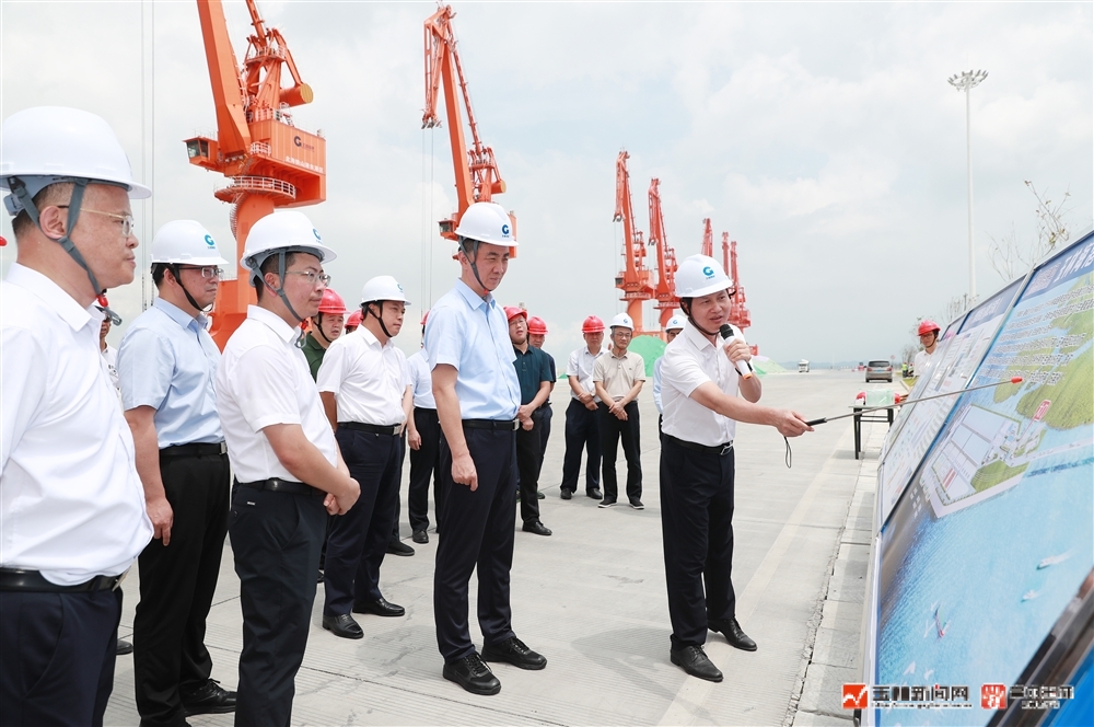 7月12日,市委书记王琛深入玉林海港码头,实地调研码头建设运营情况,现场办公协调解决问题,部署推进有关工作。(记者 陈东 摄)