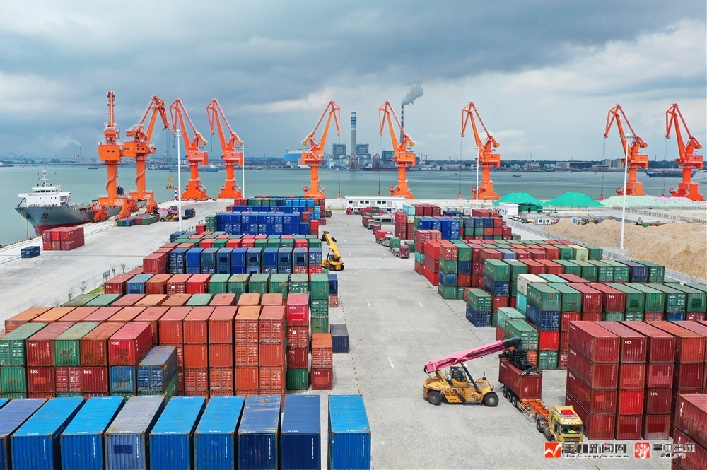 玉林海港码头装卸作业现场。