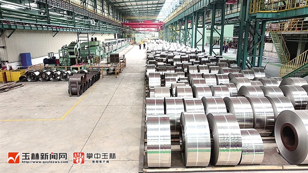 柳钢中金公司车间里,堆满了刚刚下线的不锈钢卷。